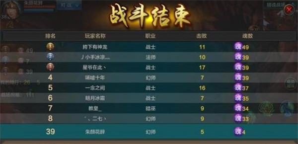 战斗结束后,依次对获得魂数多少的勇士进行排名,根据排名获得经验、铜钱、功勋以及银两奖励。