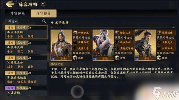骑坦体系克制控制,以指挥技能为主要输出手段。整体是偏被动的防守反击,前期通过减伤、回复、增加防御属性等方式尽可能维持自身血线(例如公孙瓒、于禁),携带反伤技能(例如典韦、乐进),以及一些可叠加效果的技能,随着回合数增加,在后期造成可观的伤害。