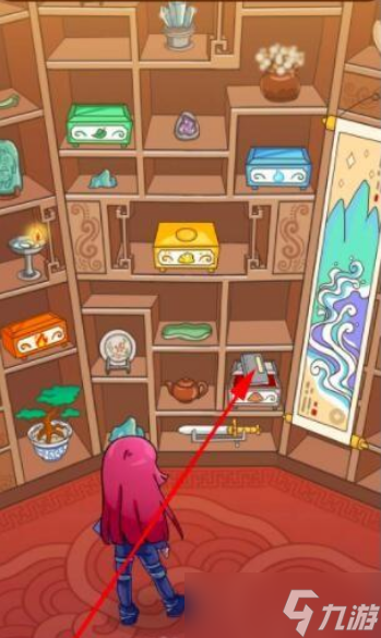 拖动山水画里的河水,可以拖出水滴,把水滴放到水标志的盒子上。盒子打开,点击拾取开国大印。
