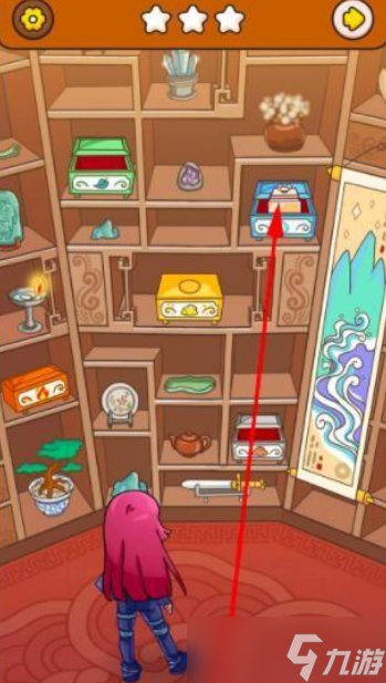 拖动烛台到火标志的盒子上。盒子打开,点击拾取香炉。