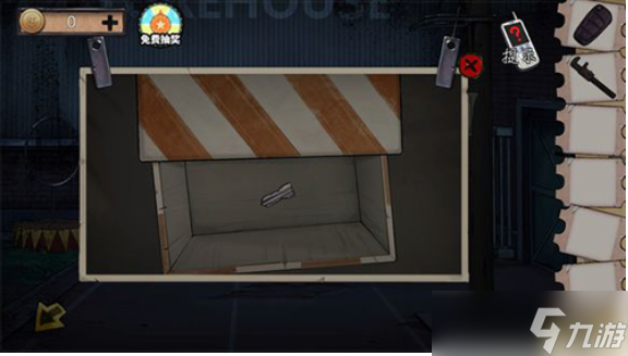 我们找到橙白相间的箱子,用锯子锯开,里面有一半钥匙。