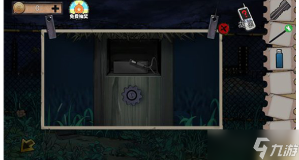 用钥匙打开汽车的后备箱,有一把铲子,把铲子拿走。去找土地,用铲子铲土,可以获得发条旋钮,再回到汽车的后备箱用这个发条旋钮打开左边的小箱子,获得一个U盘。