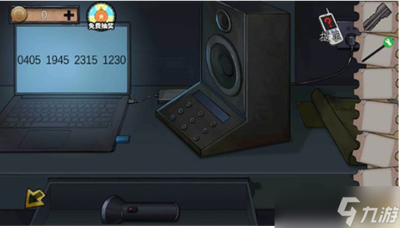 把电源适配器和U盘装在电脑上,以获取密码,打开电脑下的抽屉,里面有个手电筒。