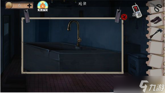 到水边,用绝缘胶带和铁棒组合,获得另外半把钥匙,可以打开右侧的门,再去左边掀开衣服得到剪刀,水龙头那边有烙铁。