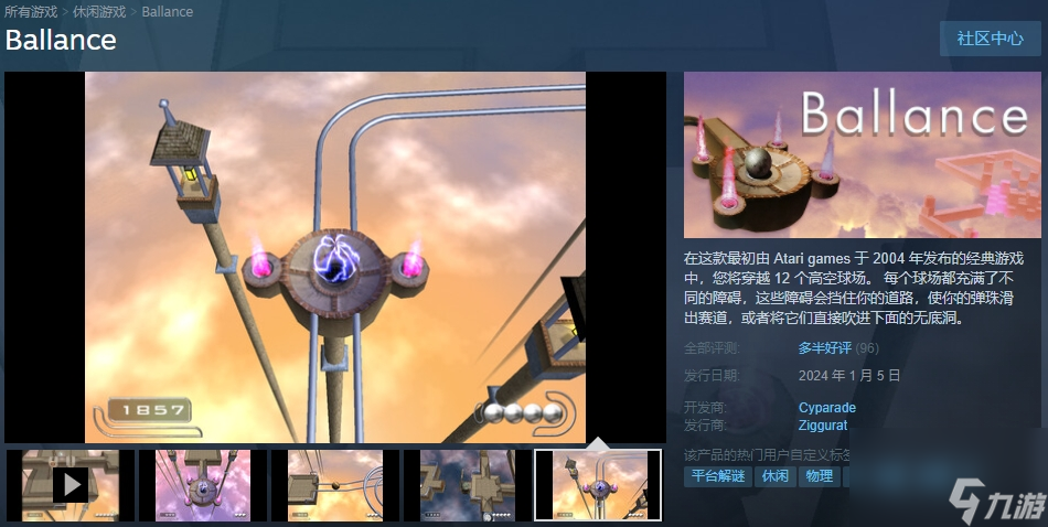 经典游戏《平衡球》正式上架Steam