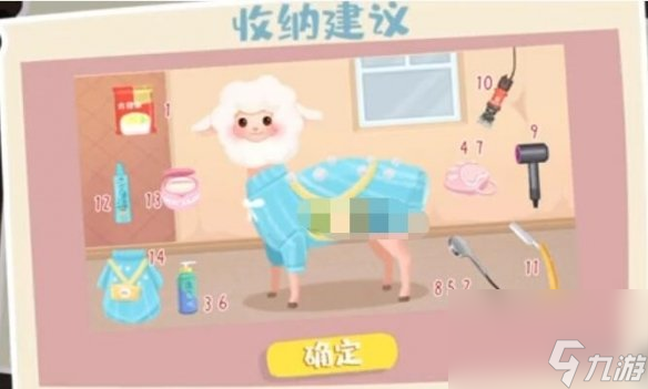 5、然后给小羊喷上花露水,再铺点粉,最后给小羊穿上衣服就能够过关啦