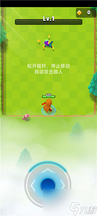 3、松开摇杆后人物将停止移动且会自动攻击敌人;