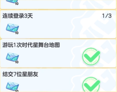 任务详情:赛季累计登录5天、游玩时代星舞台地图、结交7位星朋友。