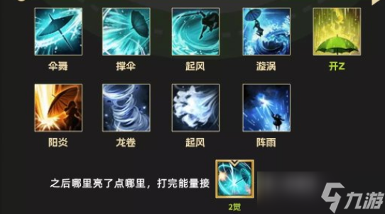 连招顺序:伞舞、撑伞、起风、漩涡、开z、阳炎、龙卷、起风、阵雨,之后哪里亮了点哪里,打完能量接【2觉】开第二套爆发