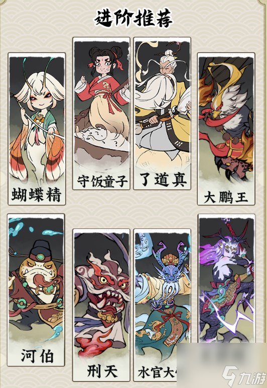 ①升阶推荐:蝴蝶精、守饭童子、了道真、大鹏王、河伯、刑天、水官大帝、黑麒麟。