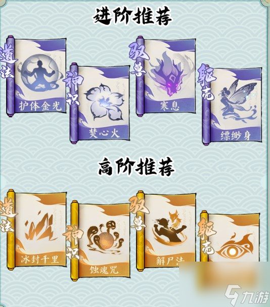 ①升阶推荐:定魂光茫、焚心火、寒息、飘渺身。