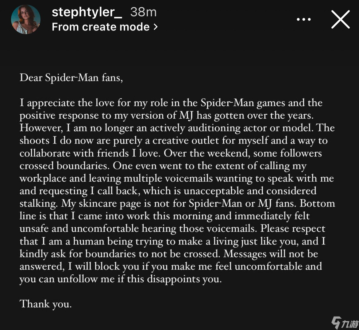 《蜘蛛侠粉丝,虽然她现在已经不再进行演员或者模特的试镜了,但是近期不断有粉丝做出越界行为让她无法接受。