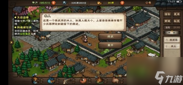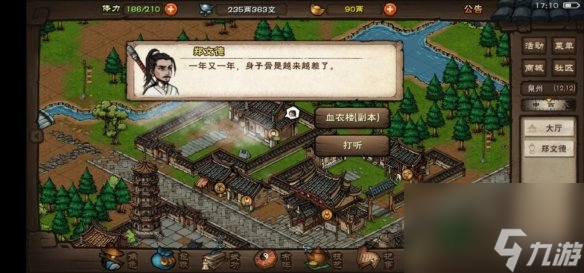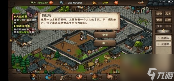 前期应该多收集一些蛇胆,因为后面任务需要用到,而且等级提升后掉落的概率会降低。石块可用于提升暗器技巧。非少林派弟子可以在子夜后去少林寺藏经阁偷书,用于合成秘技。去各个武馆和本门派打木人可以获得阅历。参加武道场(入口在各个武馆的武道碑,南阳渡武馆除外)可以换取经验丹和丹药。每周去洛阳鬼市参加九幽试炼,获得阅历、银两以及九幽币(子夜后从洛阳水井进入)。