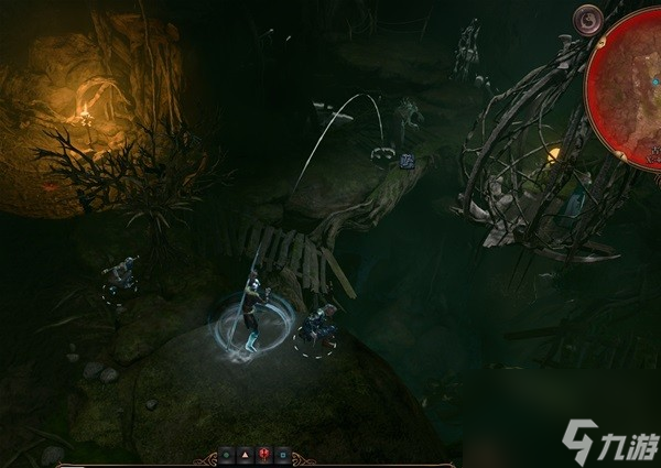 然后让其他近战站到那颗树的位置,那边是离鬼婆最近又不会触发战斗的地方,然后让近战顶上,我这里开怪是用吉斯洋基人三倍跳跃天赋一脚跳到鬼婆面前开的怪。