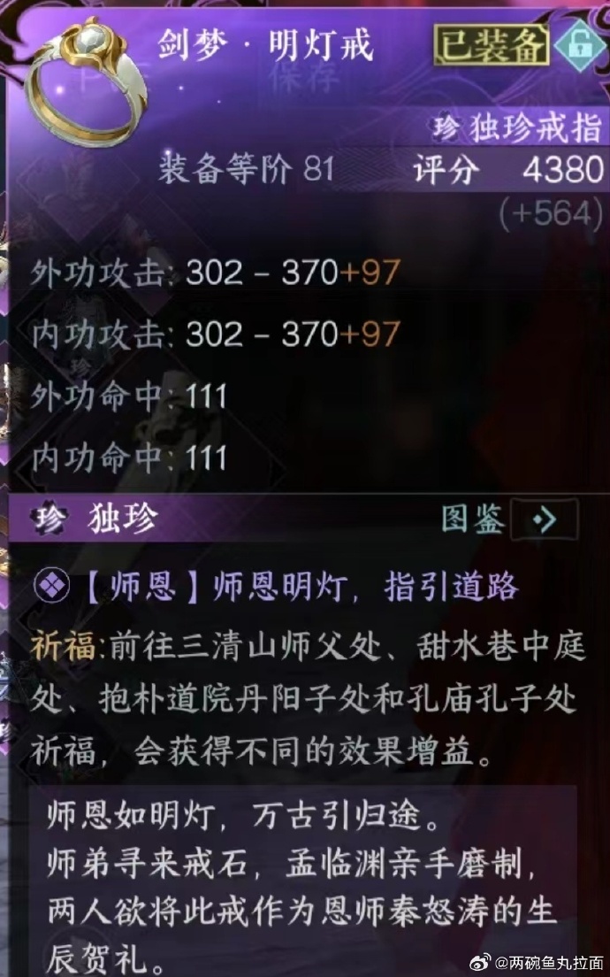 剑梦戒指(祈福)>83百炼戒指>皮影戏戒指(看已穿风格装备搭配)>81百炼戒指≥千刃熔锋戒。