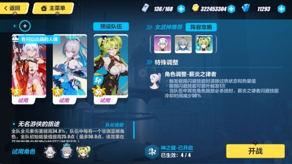 ✦ 「星火重燃·灼烁」关卡的必要出战角色为「薪炎之律者」,特殊改动是可以通过主动触发极限闪避技能清除过热状态,以直接释放分支攻击。使用「薪炎之律者」火伤队完成关卡挑战即可。