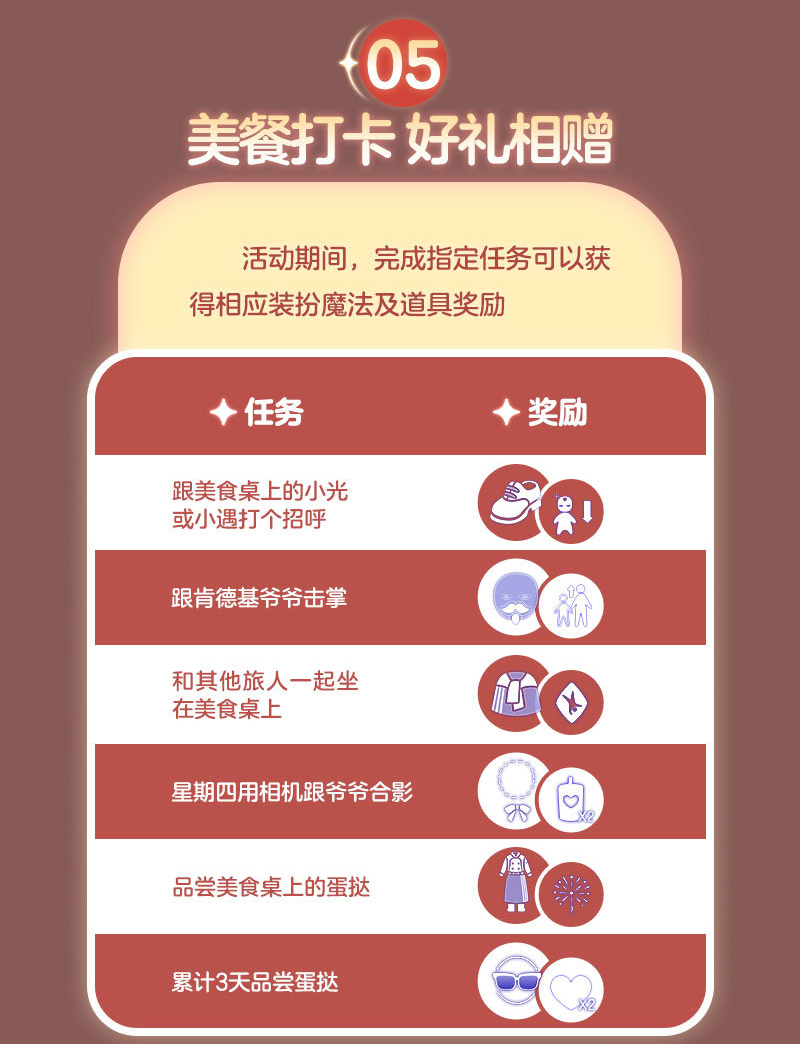活动期间,完成指定任务可以获得相应装扮魔法及道具奖励