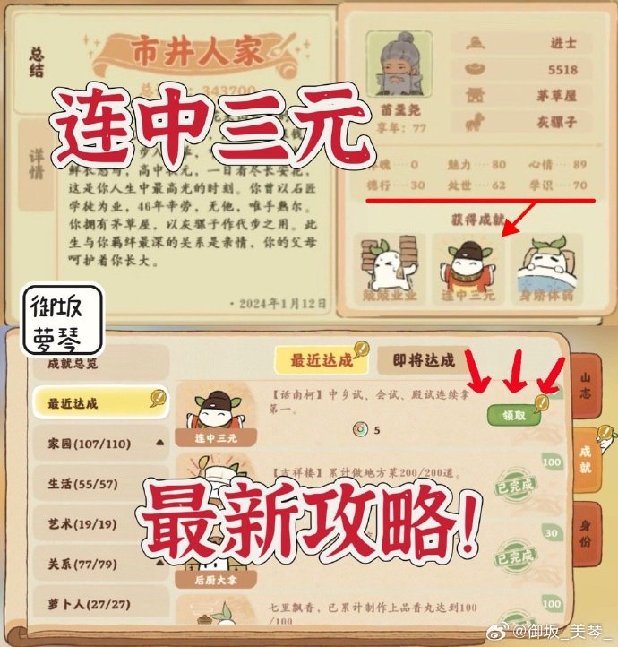 1、最新情况:【连中三元】成就不再需要玩家获得100学识!新版本目前最低只需要70学识点即可!
