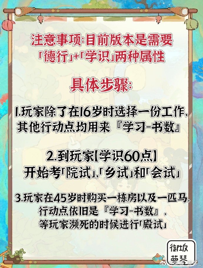 2、注意事项:目前版本是需要「德行」+「学识」这两种属性