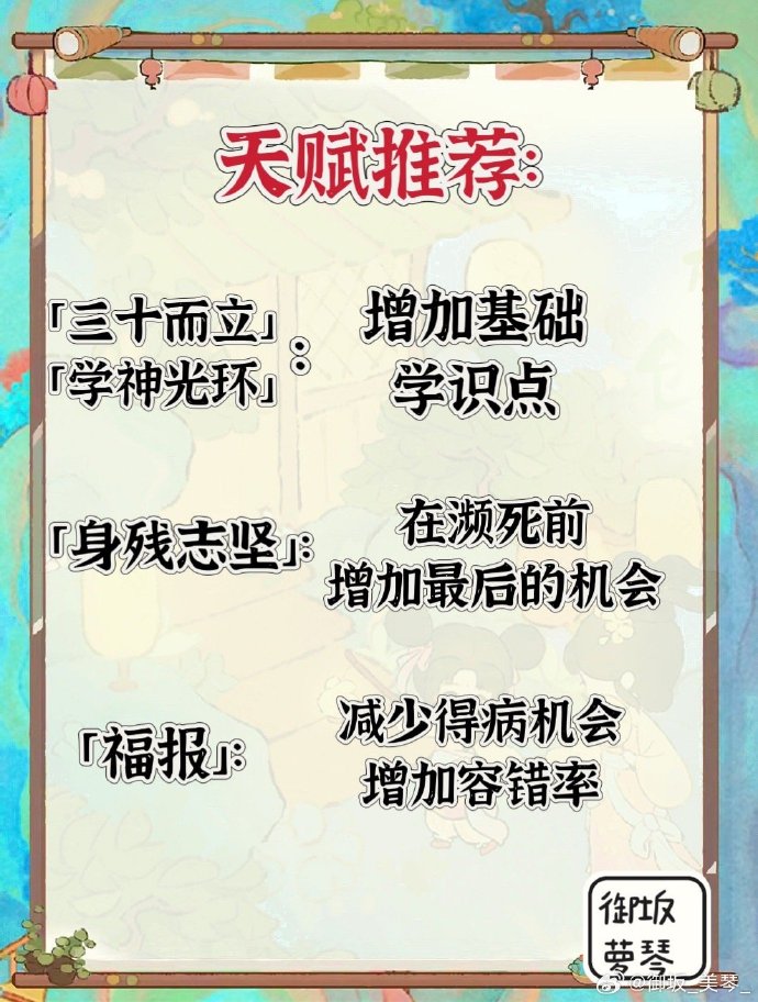 4、天赋推荐:「三十而立」,「身残志坚」,「学神光环」,「福报」