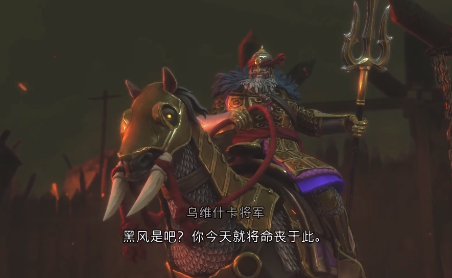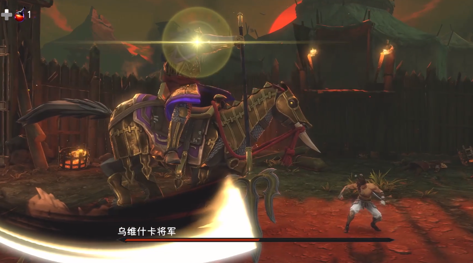 4.当boss的血量掉到一半左右会发出黄色光芒并骑马向前冲刺,抓住时机格挡将boss踢下马,就可以进入第二阶段了。
