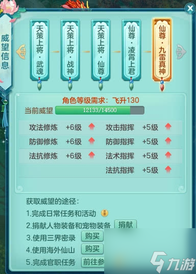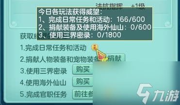 除了日常任务和活动之外,捐献装备、三界密录、海外仙山都是可以增加三界威望的途径。现如今新增官职任务,也算是进一步满足了小伙伴们对三界威望的需求。