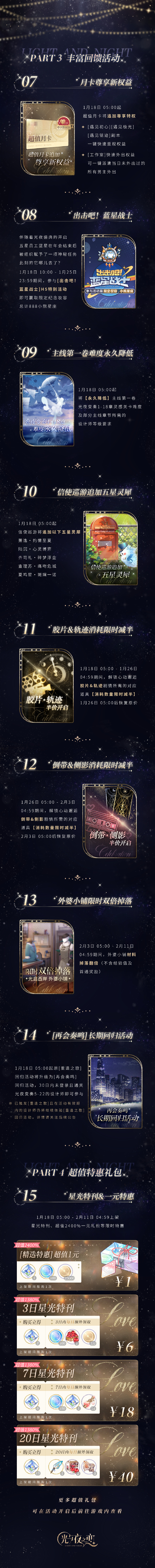 参与光夜盛典即可获得自选男主制服套装、自选六星灵犀、全套点击特效、纪念墙绘&动态忆旅、视频电话、3000+小熊星座等超豪华奖励,更有丰富回馈活动!