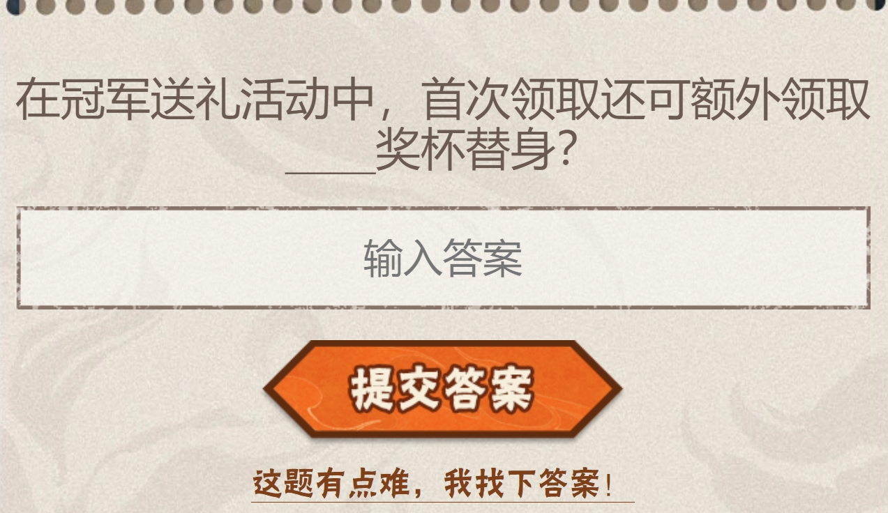 在冠军送礼活动中,首次领取还可额外领取____奖杯替身?