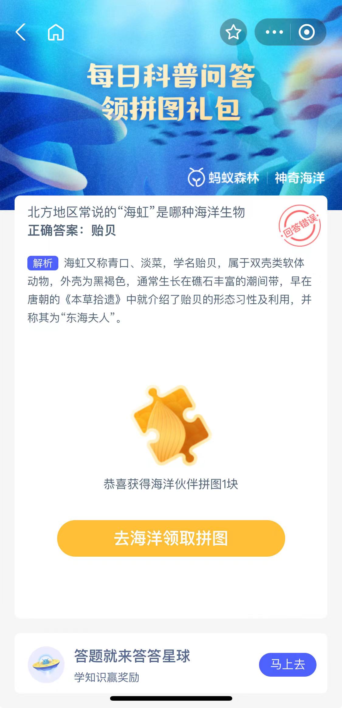 神奇海洋1月16日问题: