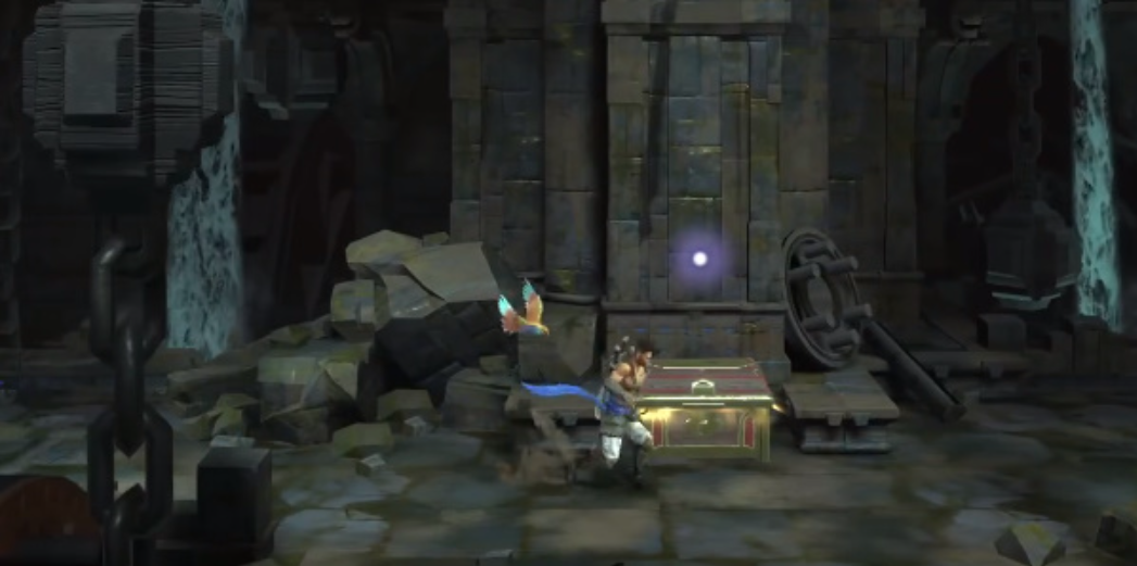 4、然后走到前面的瀑布边我们能看到在那里有一个箱子,就在平台那里。