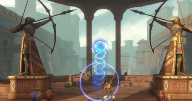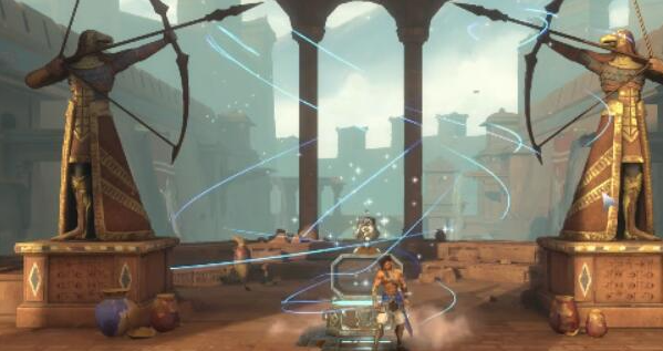 2、随后在到达之后,直接站在机关处使用弓箭向上射击。