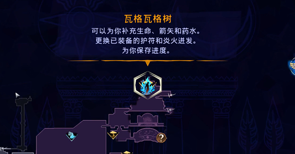 进入下方平台内部,就不会被攻击到了,这里面刚好就有个护符,瓦格瓦格树就在上方,直接就能更换护符装备。