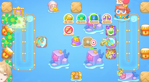 2、随后在把障碍物清理完成后,就可以开始在中间位置安放雪球炮台了,然后在中间在放置好船锚炮台,接着把左侧空位继续摆放风扇塔炮台。