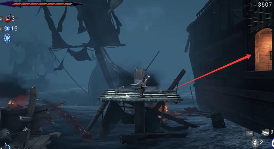 第六步:走到这里,先用技能解决掉空中的敌人,继续向右走。