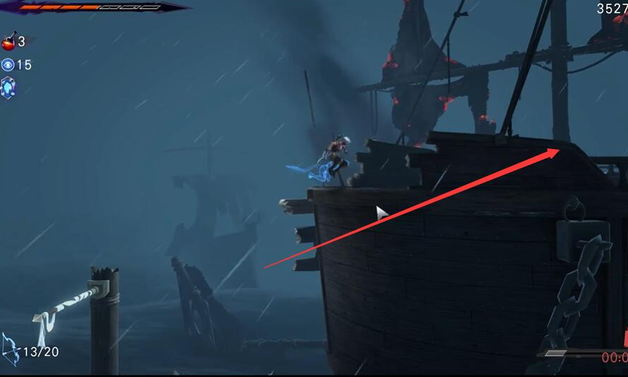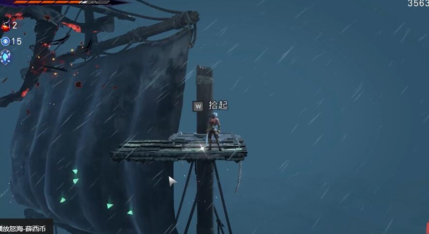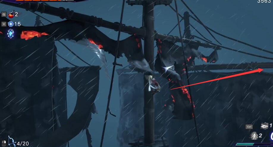 第七步:抓住木杆,依次荡到图示旗杆的木板上,便能获得大流国王给船长的信。