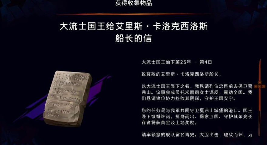 信中,大流士国王恳请艾里斯前去保卫戛弗山,守卫王国。