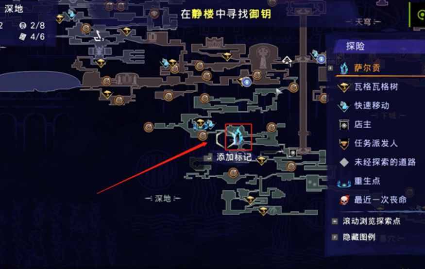1、玩家首先需要前往深地的中间区域,也就是图中所处的位置。