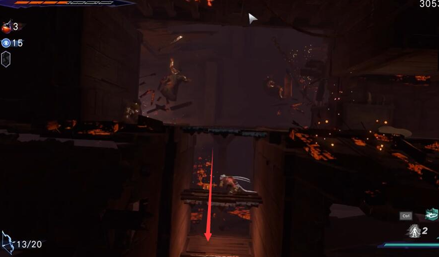 第四步:避开陷阱,然后继续向左移动,遇到木板后向下跳去。
