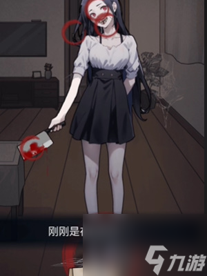 2、接着来到场景二,找出图中奇怪的地方分别是血红色的眼睛、满嘴的蜘蛛网、脚下的蜘蛛网、昏暗的房间、带血的菜刀(点击女孩的手臂出现)。