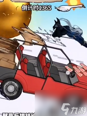 2、把中间滑板上的钱移到滑板上将其变成一辆大越野车,再把车盖上的钱移到奶奶身她就会到越野车的驾驶位上。