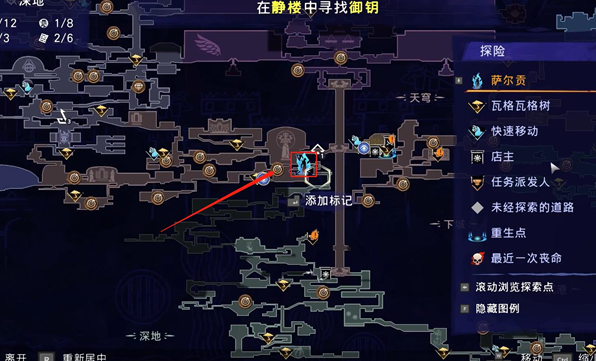 1、首先玩家需要先前往下城区域,就在图中所标注的位置。