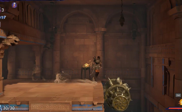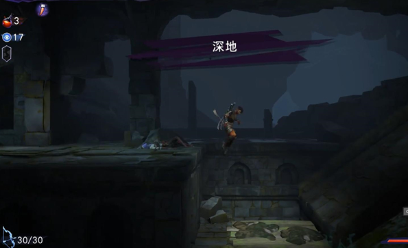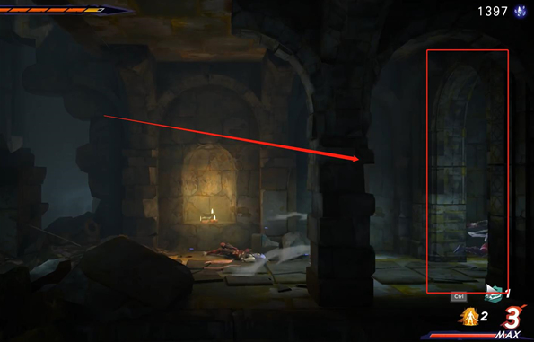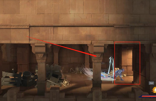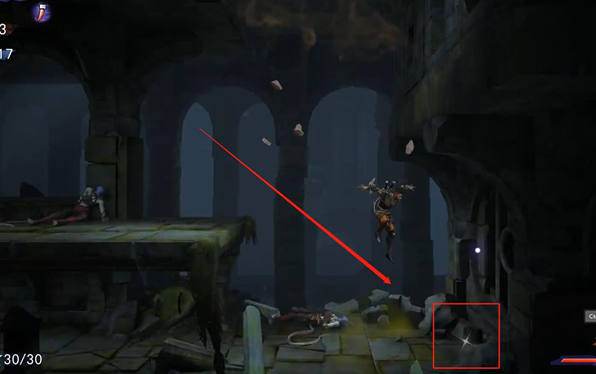 3、进去之后玩家可以看到右边有缺口和机关,玩家从缺口跳下去。