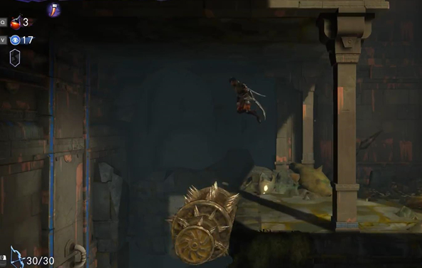 8、跳下去之后下面还有几个木板,玩家自然掉落就可以。