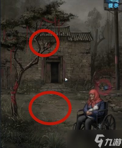 11、将破旧照片置于院子寿衣处可以获得密码,用于开启左侧的门。