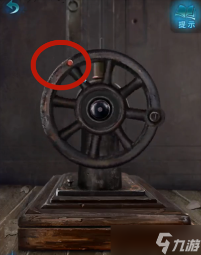 14、离开并进入左边房间,依照磁带红点转动方向转动缝纫机红点,得到强力胶。
