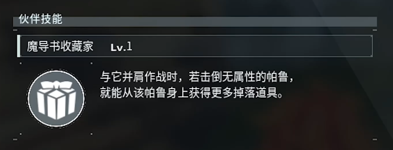 前期如果缺皮革的话非常推荐大家来双骑士大桥这边刷狼,基本上刷个来回3-4趟就不会太缺皮革了,有条件的还可以带上暗巫猫,暗巫猫的伙伴技能“魔导书收藏家”的效果是打死无属性帕鲁后会掉落额外的道具,带上可以极大增强获取效率。