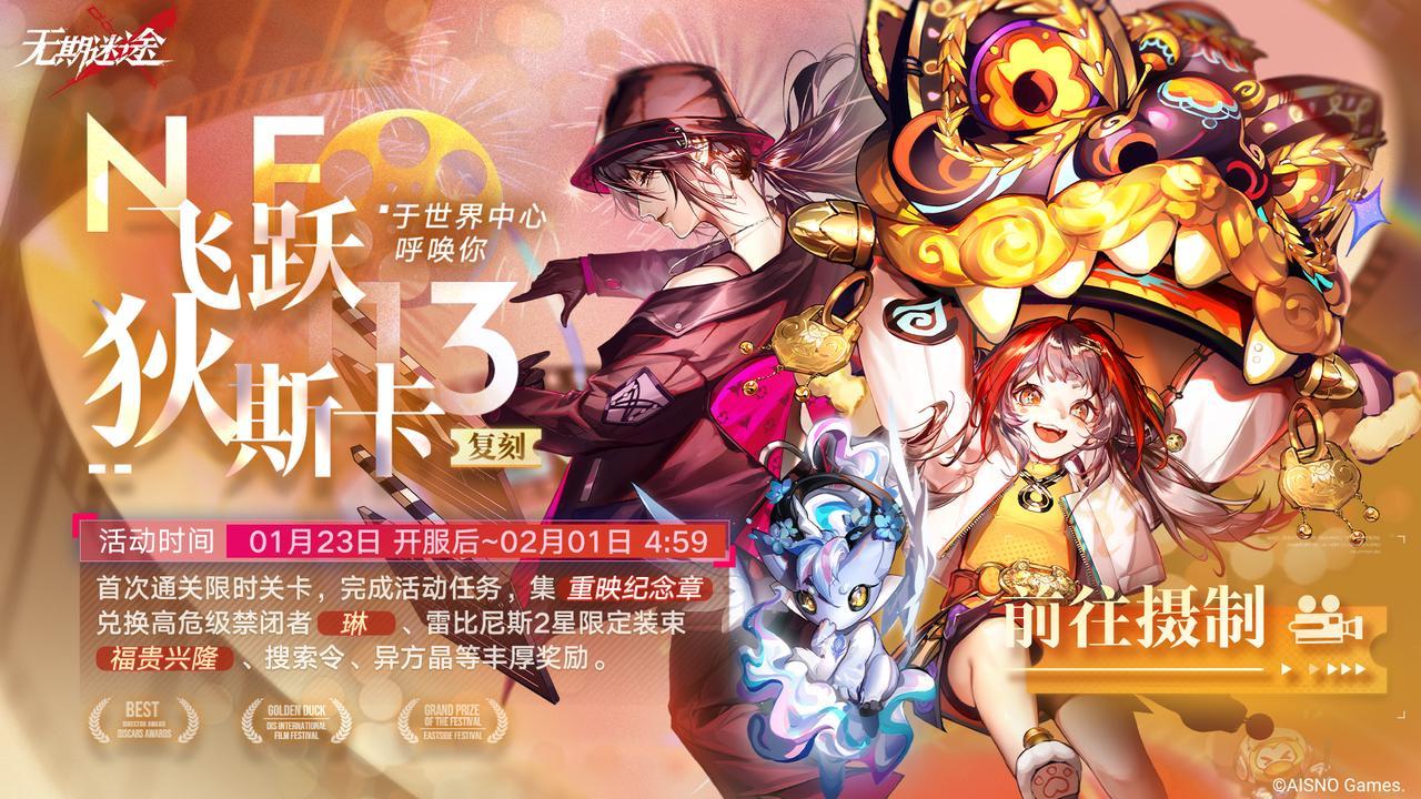 ■活动说明:首次参与通关限时关卡,完成活动任务,收集活动代币【重映纪念章】,兑换高危级禁闭者【琳】、【雷比尼斯·福贵兴隆】★★限定装束、唱片【星光之路】、意识晶核、异方晶等丰厚奖励!
