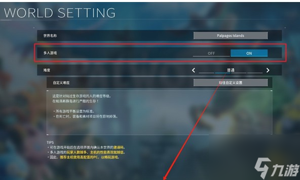 2、然后创建一个房间,将房间设置的【多人游戏】更改【ON】,之后可根据喜好自由更改游戏世界设置;