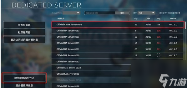 3、也可以点击左下角的【建立服务器的方法】建立一个自己的服务器;