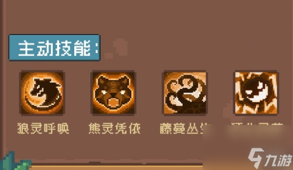 2、还有狼灵呼唤、熊灵凭依、藤蔓丛生和狂化灵药四个主要技能。